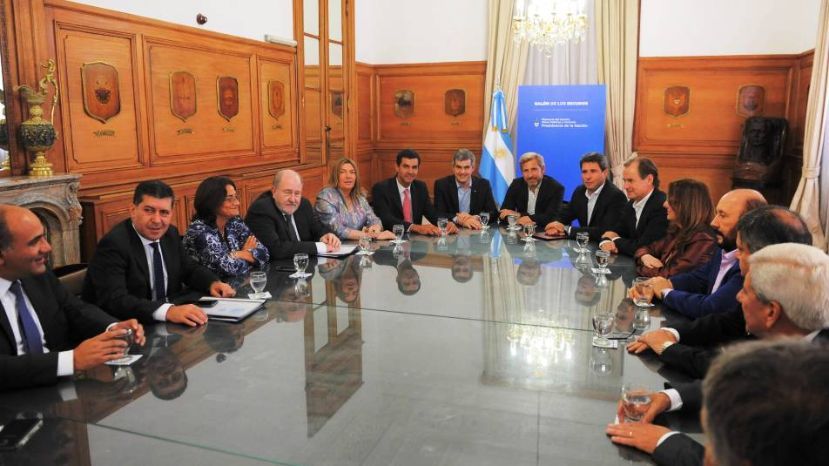 A la reunión, que se desarrolla en el Salón de los Escudos, se sumaron más tarde Juan Manuel Urtubey (Salta), Miguel Ángel Lifschitz (Santa Fe), Rosana Bertone (Tierra del Fuego), Juan Schiaretti (Córdoba), Juan Manzur (Tucumán), Omar Gutiérrez (Neuquén) y Alberto Weretilneck (Rio Negro).