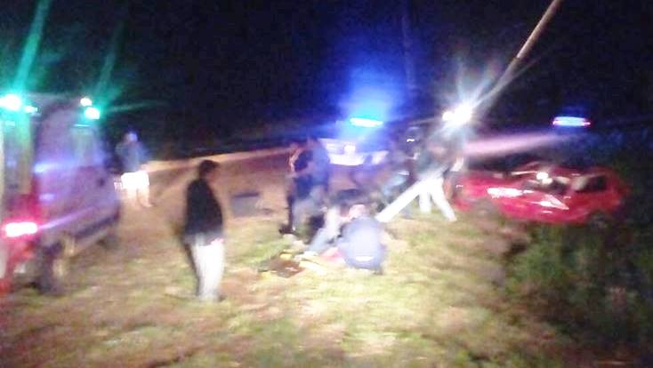 ALEM. A las 00:30 hs del lunes sobre ruta provincial Nº 4, altura del Km 35 en sentido Dos Arroyos-Alem, Lucas S. (26) perdió el control del Fiat Uno en el que venía junto a Sergio K. (32), Gonzalo Rafael Vargas (23) y un menor de 16 años. Tras el despiste, el rodado fue a impactar contra el poste del tendido eléctrico.