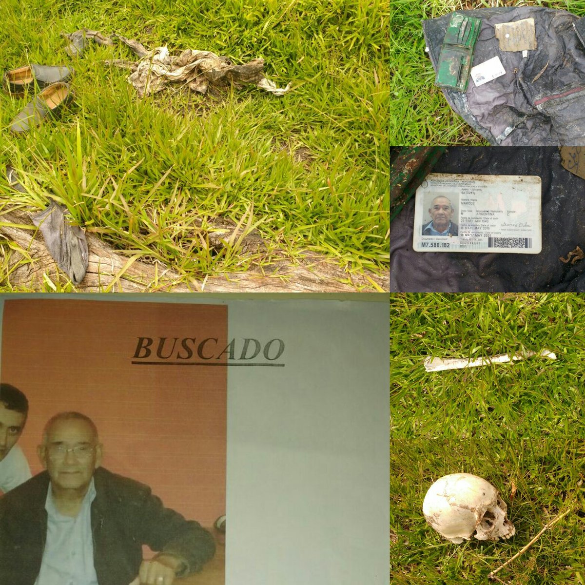 Se realizó un intenso rastrillaje en el lugar, donde se hallaron prendas de vestir y un Documento Nacional de Identidad a nombre de Marco Da Silva (74), quien se encuentra desaparecido desde el mes de julio del corriente año. La policia investiga el hecho para establecer de quien se trataría y conocer fehacientemente las causas del deceso.