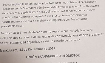 OBERA. Dirigentes de la UTA tomaron la decisión de no adherir al paro en una reunión que mantenían esta tarde con dirigentes de otros gremios de la CGT y repudiar la violencia desatada este lunes frente al Congreso de la Nación.