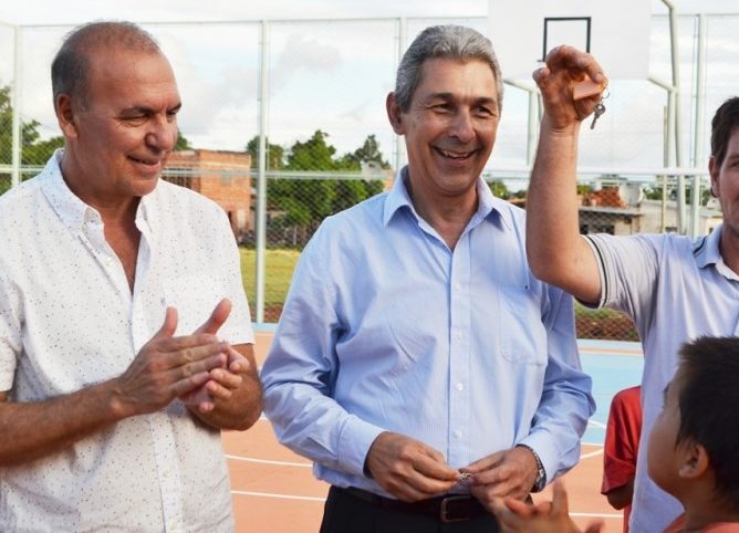 OBERA. La Municipalidad de Oberá junto a la Unidad Ejecutora Provincial a cargo del hotelero Luis Pires, habilitaron tres playones deportivos en distintos barrios de la ciudad. Del acto participó el intendente Carlos Fernández.