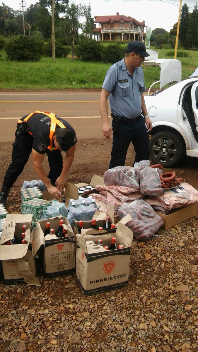 Los efectivos de la UR-VI decomisaron 135,590 kg de carne, 40,435 kg. chorizos ahumados,9 cajas de vino, 6 pack de cerveza Malta, otro de cerveza Skol además 2 Cajas c/ frascos pepinos en conserva, todos origen brasileño.