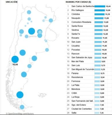 En tanto, actualmente el monto más bajos se da en Salta ($ 7,45) aunque desde febrero se aumentará mensualmente $ 0,50 para llegar a $ 10,45 en julio. Otras ciudades por debajo de los $ 8 son Corrientes ($ 7,68) ySantiago del Estero ($ 7,95), aunque los gobiernos provinciales tienen en agenda posibles cambios tarifarios para los próximos meses. Los datos corresponden al Ministerio de Transporte de la Nación.