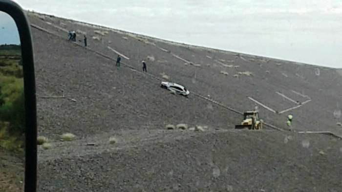 Por el momento, no habría otro vehículo involucrado. En esa posición quedó el Chevrolet Vectra que cayó por un barranco de unos 30 metros, hacia una de las laderas del dique de Casa de Piedra, a 120 kilómetros de la ciudad de General Roca.