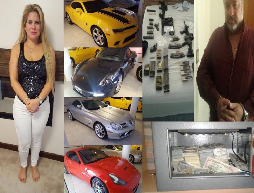 En el allanamiento se encontraron, además, diez vehículos. Un Land Rover modelo Ranger Rover argentino, una Ford Raptor, Porsche Boxter argentino, Porsche Panorama argentino, Chevrolet Camaro Mat argentino, Ferrari California, Mercedes Benz McLaren Mat argentino y tres cuatriciclos.