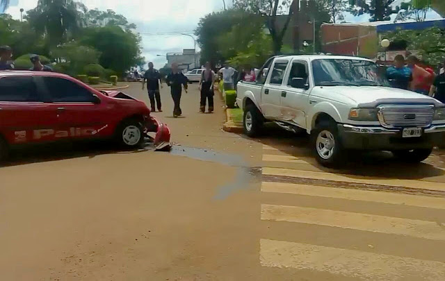 SAN VICENTE. Ocurrió cerca de las 11:40 sobre la Avenida, allí una Ford Ranger iba conducido por Cristian A. S. (24), acompañado de su madre Sandra B. (43), cuando se encontraba realizando la rotonda de la Avenida Libertador en dirección a la Avenida Constitución un Fiat Palio lo Impacta, este era conducido por Liliana F. (35) quien circulaba por Avenida Libertador.