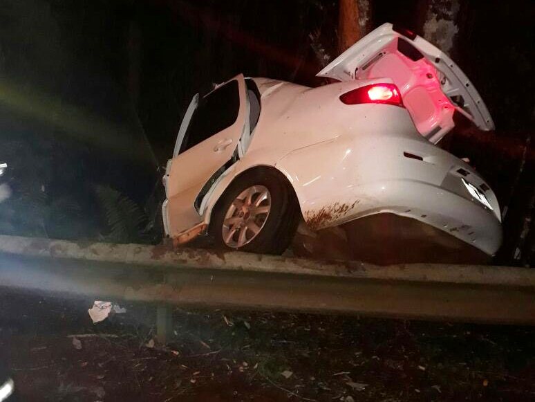 Anoche alrededor de las 21:50, sobre la ruta nacional 101, a 500 metros de la intersección con la ruta nacional 12, en la ciudad de Puerto Iguazú, un vehículo Fiat Siena (taxi) despistó, salió a la banquina y en las zona de malezas se incrustró contra un árbol.