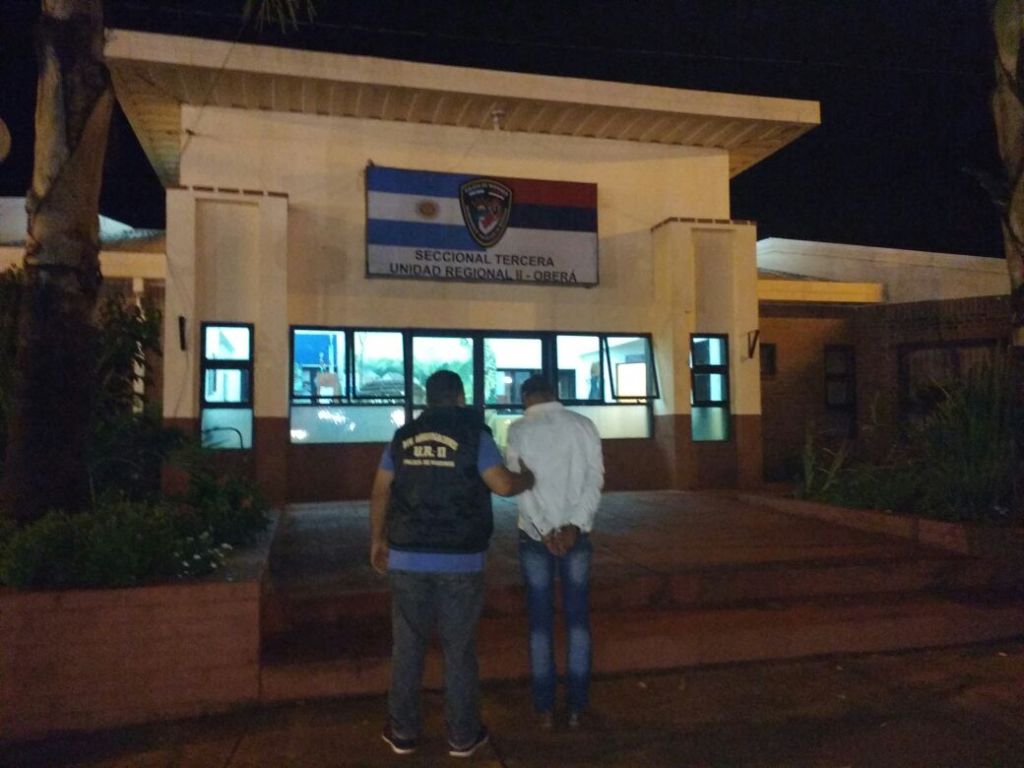 OBERA. Efectivos de la División Investigaciones de la Unidad Regional II, Oberá, detuvieron sobre calle Finlandia casi La Rioja, a Carlos V. (35) sindicado en un hecho de robo ocurrido en perjuicio de Marta V. (50) en una sala de juegos del Casino. El detenido, de frondoso prontuario delictivo, fue captado por las cámaras de seguridad del recinto cuando se apoderaba de las pertenencias (billetera y teléfono celular) de la mujer y luego se marchaba de la sala.