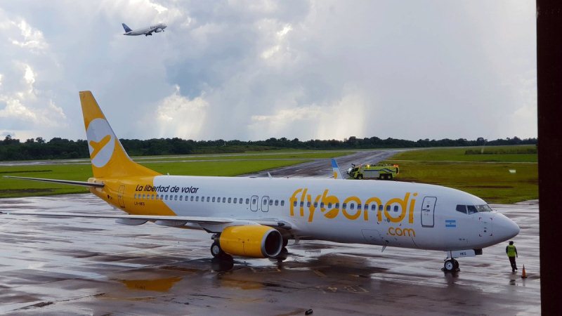 CATARATAS. La primera Low Cost del país, FlyBondi, despegó desde el Aeropuerto Taravella, Córdoba a las 15.10 horas y aterrizó en el Carlos Krause de Puerto Iguazú con 189 pasajeros a las 17. El costo del pasaje fue menor a mil pesos, la mitad de un servicio terrestre.