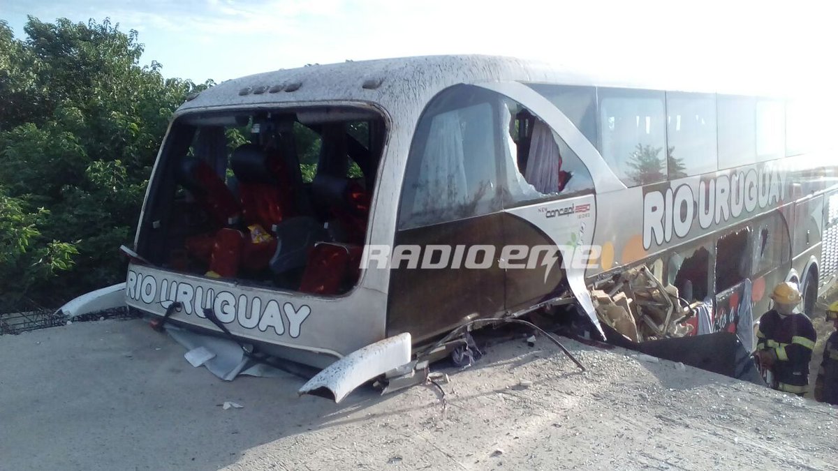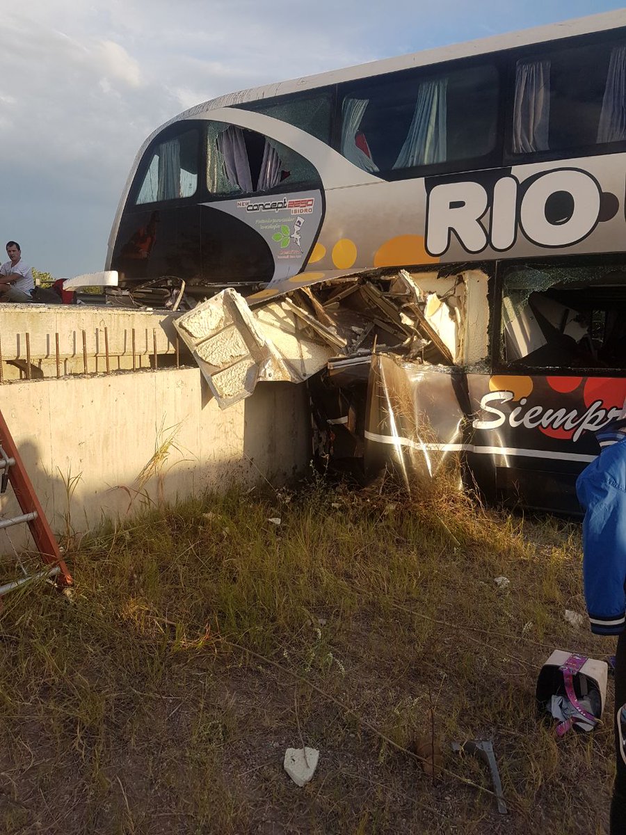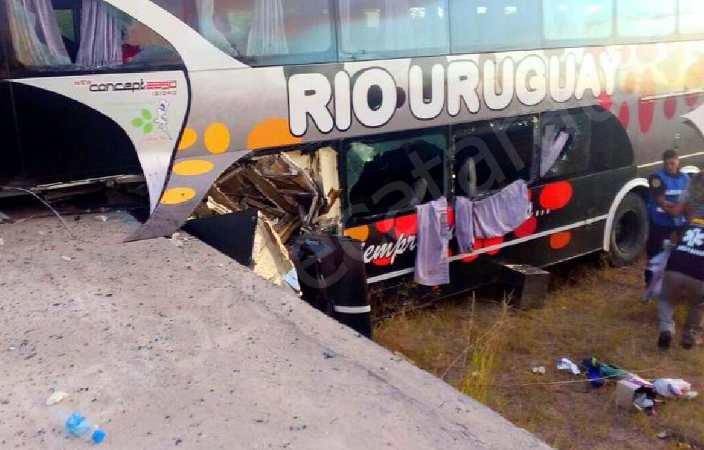 Un colectivo de la empresa “Río Uruguay” procedente de la provincia de Misiones que trasladaba a niños de entre 8 y 12 años pertenecientes a una Escuelita de fútbol, chocó contra un puente en construcción y quedó incrustado en el mismo.