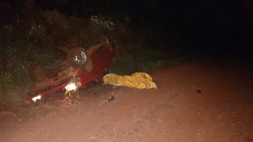 LOS HELECHOS. El hecho se registró ésta madrugada en la zona urbana de la localidad de Los Helechos, cuando por razones que se tratan de establecer un automóvil Volkswagen Saveiro, que era conducido por Alberto W, despistó y quedó en posición invertida.