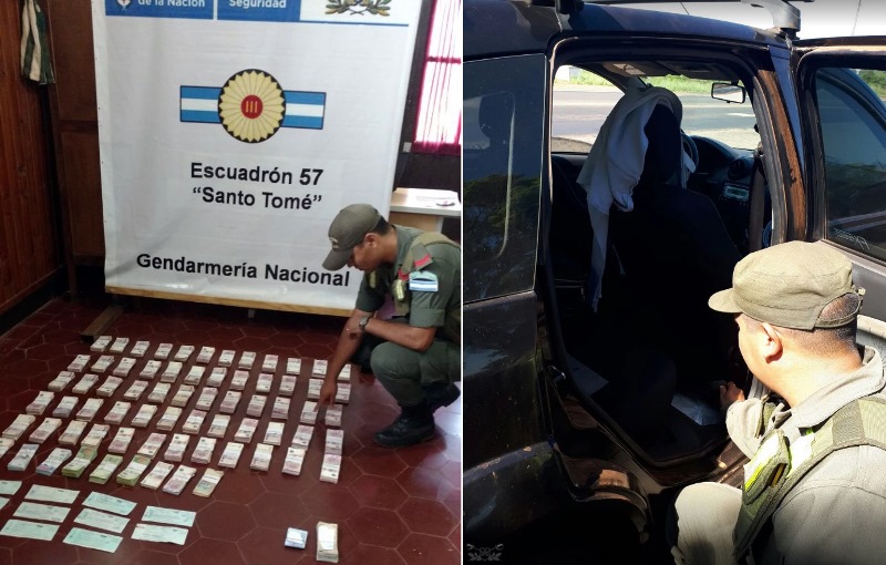 Gendarmería Nacional, dependiente el Ministerio de Seguridad de la Nación, incautó una suma de $ 1.532.864,31 entre dinero efectivo y cheques que eran llevados ocultos. Ocurrió en un operativo de seguridad ciudadana próximo a la localidad correntina de Santo Tome.