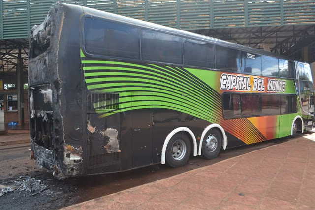 SAN VICENTE. Cerca de las 1 de la mañana de hoy jueves un colectivo de la empresa Capital del Monte sufrió un incendio en la parte de su motor en la terminal de San Vicente. Gracias a la pronta acción de Bomberos Voluntarios del municipio el fuego no consumió a toda la unidad. En el lugar trabajaron 3 dotaciones y no se registraron lesionados.