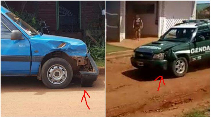 SAN VICENTE. Durante la cinematográfica persecución en esa localidad, un móvil de Gendarmería Nacional chocó a una camioneta Renault Express que estaba estacionada, según informó el periodista local Daniel Orloff.