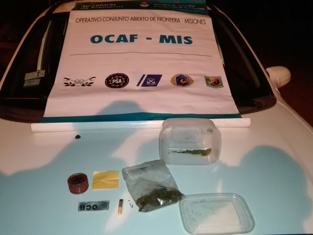 Los ocupantes del Chevrolet Corsa tenían 32 grs de cannabis sativa en el interior del auto. Sustancia confirmada por personal de Toxicomanía UR-VIII.