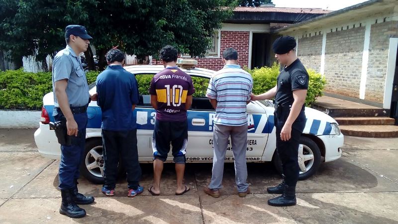 CAMPO VIERA. El hecho se registró ayer en el kilómetro 28 de esa localidad, donde fueron detenidos Gabriel V. (20), Cristian V. (17) y Bruno V. (24); éste último, resultó con una lesión cortante en el brazo derecho. Los mismos se enfrentaron con machetes. La comisaría local tomó conocimiento a través de una llamado telefónico por parte de la madre de los jóvenes, Estela P., quien alertó a los uniformados sobre la situación. Inmediatamente la división Comando Radioeléctrico y Comisaría de Campo Viera se constituyeron en el lugar y constataron el hecho, y precedieron a la detención de los contendientes. Además secuestraron en poder de los mismos un machete. Luego de recibir atención medica, el joven lesionado fue alojado junto a los demas en la comisaría local a disposición de la Justicia.