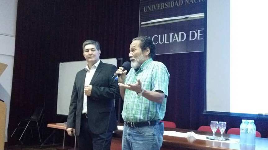 OBERA. El ministro de Energia de la Provincia de Misiones, Sergio Lanziani brindó una disertación y debate en el Aunditorio de la Facultad de Ingenieria de Oberá que estuvo a sala llena este miércoles.