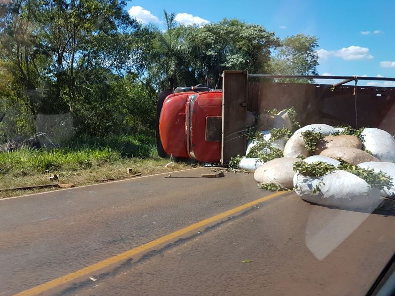 CAMPO RAMON. El hecho se registró ésta tarde en la ruta provincial 103, en Villa Bonita, municipio de Campo Ramón. Por causas que se tratan de establecer, un camión Mercedes Benz cargado con raídos de yerba mate, que era guiado por Yonatan D. (24), volcó quedando en posición invertida sobre la mencionada ruta.