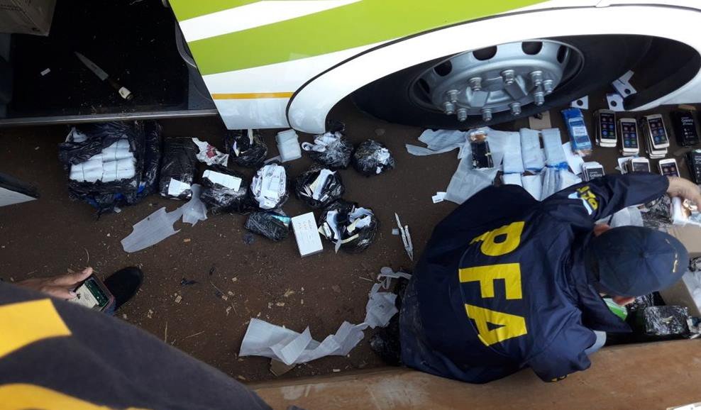 Durante la requisa, los policías dieron cuenta de la existencia de varias bolsas con mercaderías de origen extranjero en la cabina de los conductores. Frente a ello, se puso en marcha el protocolo de actuación y se requirió la presencia de testigos. La pesquisa arrojó que se trataba de 65 teléfonos móviles de alta gama y mil display para celulares.