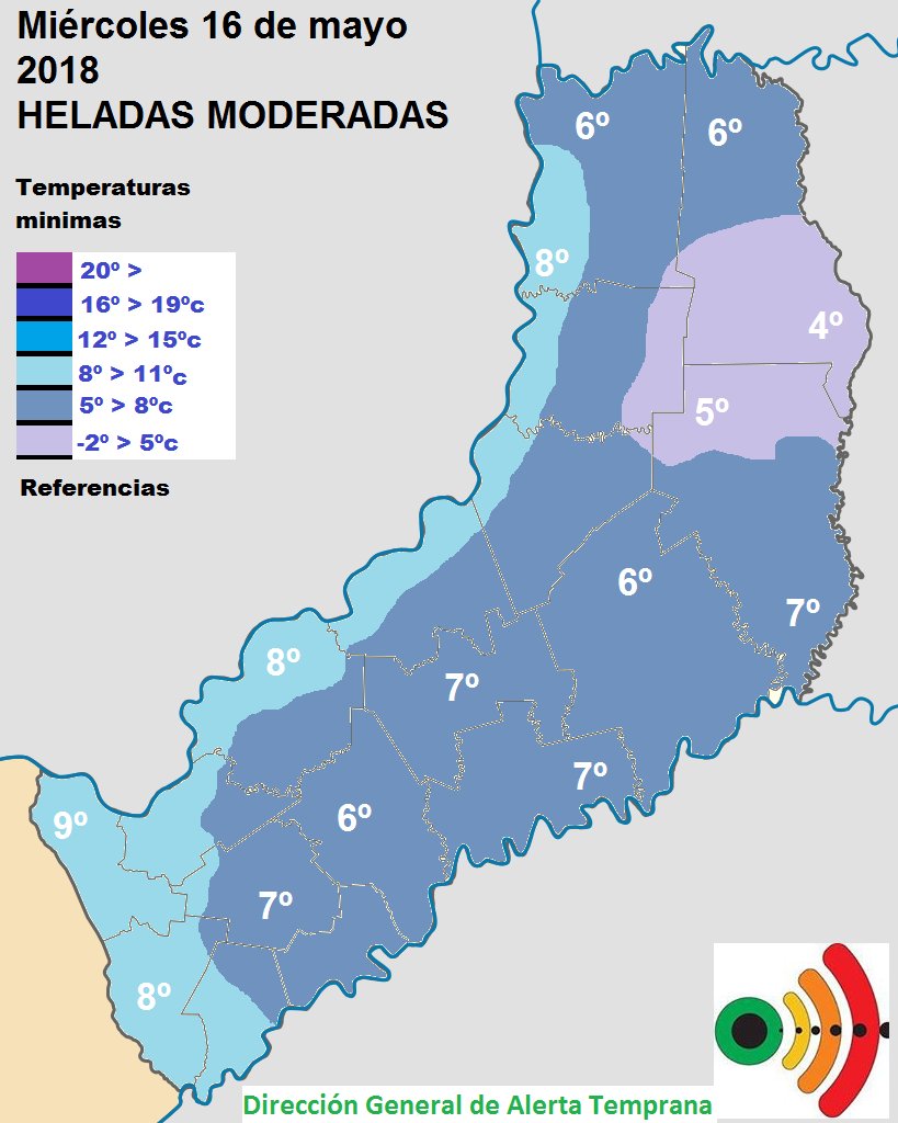 OBERA. Primer frente frío que podría provocar las primeras heladas en Misiones, entre la noche del martes 15 y madrugada del miércoles 16, con mínimas que podrían descender hasta 4ºc.