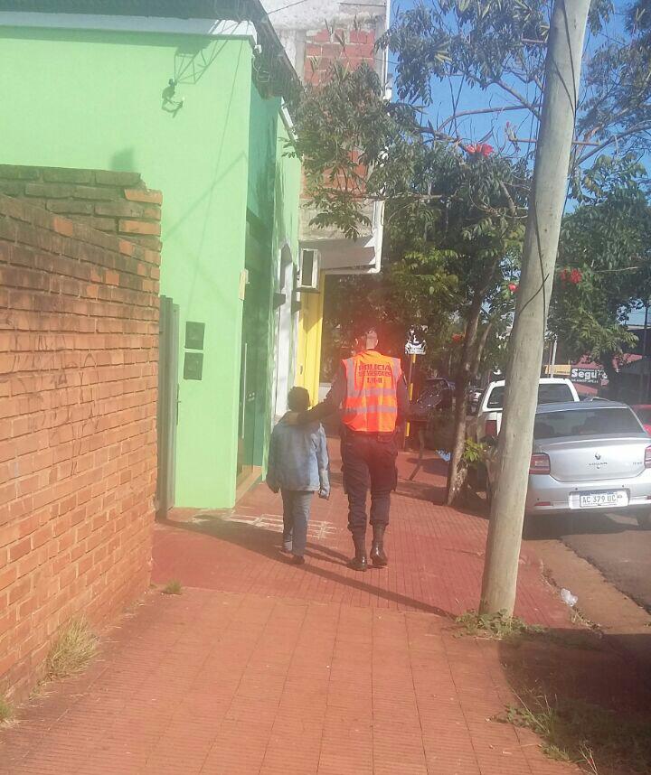 OBERA. Esta mañana, una suboficial y un agente de la Policía de la Provincia de Misiones, con prestación de servicio en la seccional Cuarta y la Patrulla Motorizada, dependientes de la Unidad Regional II, encontraron a una niña de 9 años que estaba pérdida en la vía pública. Inmediatamente los servidores públicos pusieron en resguardo y brindaron contención a la menor.