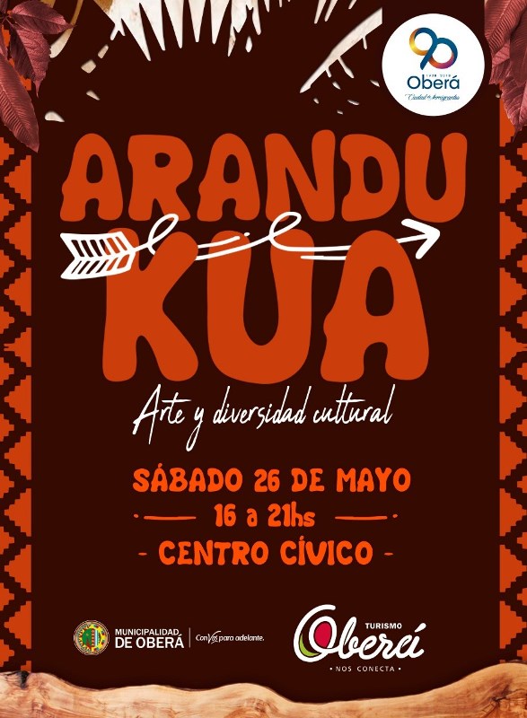 OBERA. La Municipalidad de Oberá, a través de la Dirección de Turismo y el Departamento de Cultura, convoca a artistas de todas las ramas a participar del evento artístico-cultural “ARANDU-KUA”. El mismo tiene como objetivo crear un espacio abierto donde exponer las manifestaciones artísticas y culturales que fueron construyendo nuestra identidad a lo largo de estos noventa años que cumple nuestra ciudad. El evento será el próximo sábado 26 de mayo en el centro cívico.