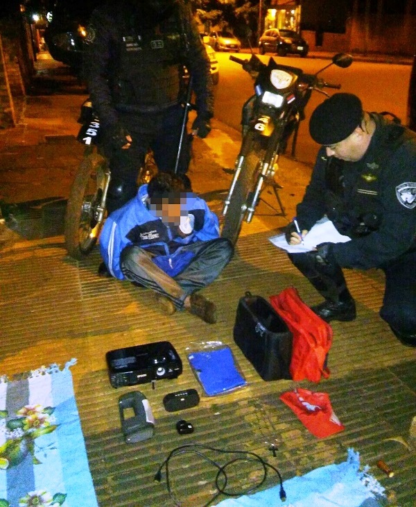 El sujeto tenía en su poder una serie de elementos que fueron secuestrados, entre ellos, un proyector con cables de conexión, una luz de emergencia, y un teléfono celular.