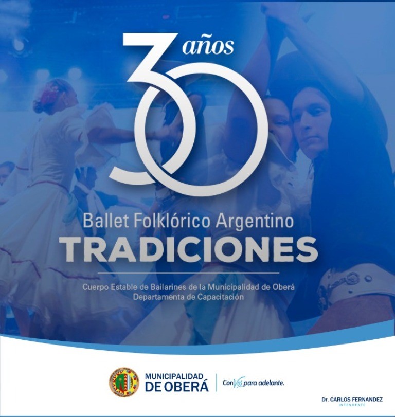 OBERA. Para celebrar los 30 años de existencia del ballet Folklórico Argentino Tradiciones realizará un festival de danza el próximo sábado 2 de junio en el Parque de las Naciones a partir de las 18 con entrada libre y gratuita. Habrá reconocimientos a bailarines y a los profesores que dieron origen al ballet.