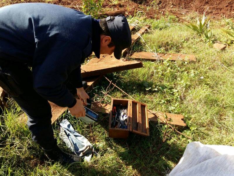 En la espesa vegetación que rodea la morada del mismo, los uniformados incautaron entre malezas y debajo bolsas tipo plásticas (01) Caja madera conteniendo herramientas varias (llaves, destornilladores, martillos, pinza, entre otras), como además (01) Autoestéreo con el respectivo control remoto, también restos de plásticos de motocicletas, lo que no descarta otro tipo de ardid delictivo. Mientras que el supuesto autor del atraco continúa prófugo, por lo que se intensifican los patrullajes en la zona con el fin de ponerlo a disposición de la Justicia Penal.