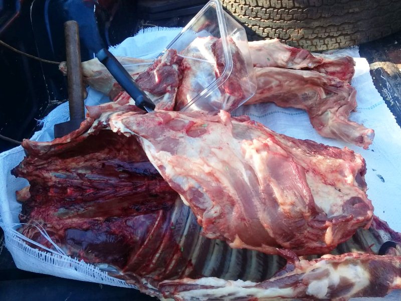 Tras la denuncia de Rudy R. (61) por la sustracción de 4 animales porcinos de su chacra del paraje Sarmiento, se inició una rápida investigación que finalizó con el secuestro de más de 18 kilos de carne faenada, 1 martillo, 1 gancho, 1 cuchillo y la detención de los jóvenes.