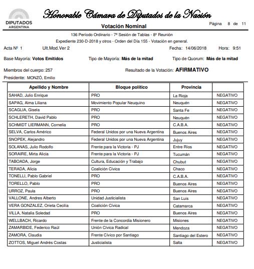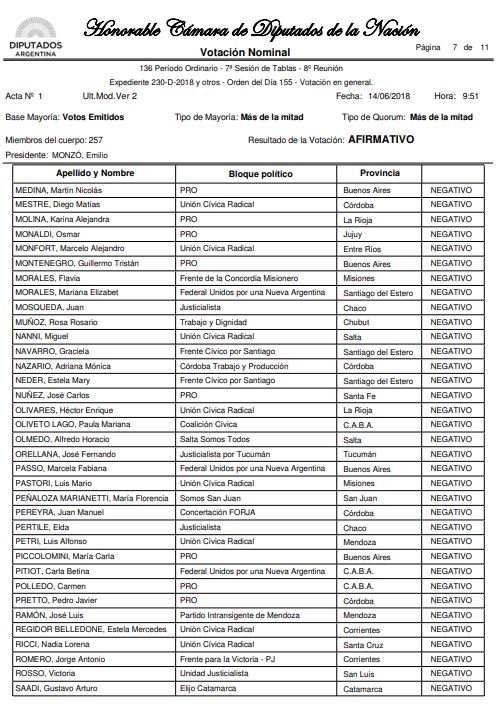 Son 7 diputados nacionales: 3 VOTARON A FAVOR DE LA DESPENALIZACIÓN Y 4 VOTARON EN CONTRA DE LA DESPENALIZACIÓN