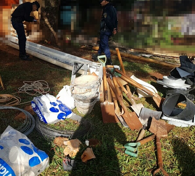 La denuncia fue radicada por Gustavo C. (37), quien manifestó que ésta mañana se hizo presente en el lugar, donde hay una obra en construcción, y constató que la puerta de acceso al deposito de materiales estaba violentada, y que le sustrajeron nueve palas, cuatro picos, gran cantidad caños de PVC de electricidad, un reflector de luz led, dos pre-marcos de ventana de aluminio, accesorios de PVC, tres cámaras de inspección de PVC, dos cajas conteniendo accesorios de polipropileno, tablero eléctrico, bolsas de cementos y cajas con elementos varios utilizados en la construcción.