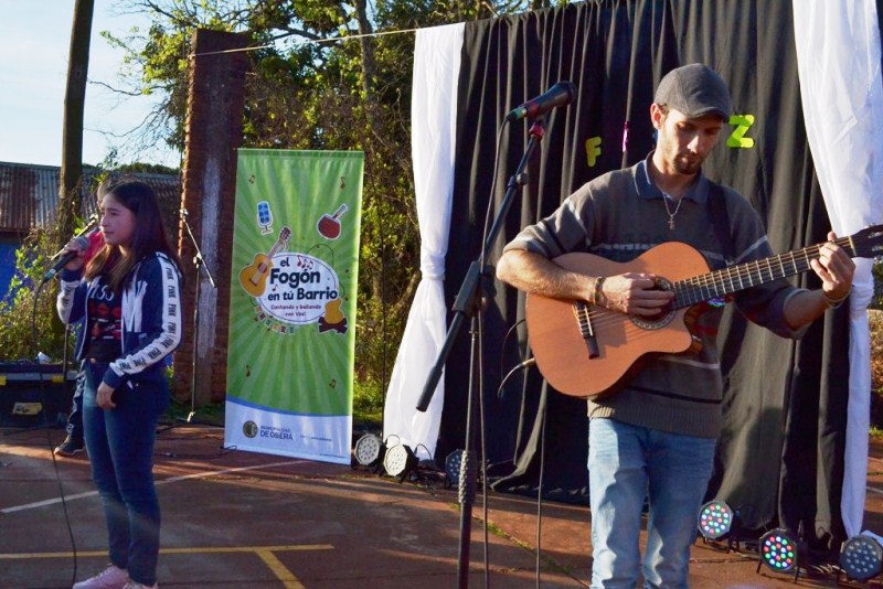 OBERA. El pasado sábado, vecinos del barrio de Cien Hectáreas, pasaron una tarde a puro canto, baile con regalos y homenajes, en el nuevo programa municipal “El Fogón en tu barrio”.