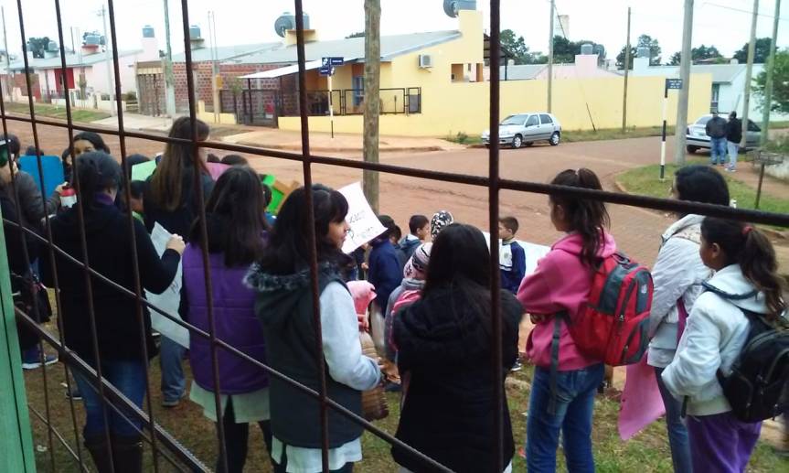 OBERA. Esta mañana padres y alumnos tomaron la escuela 926 de Villa Stemberg en reclamo por un nuevo edificio escolar comprometido desde 2014 por el gobierno provincial. En horas del medio día, llegaron supervisoras escolares, entre ellas María del Carmen “Pocha” Jalil de Estévez y tomaron nota del reclamo. No obstante, los padres no quedaron convencidos con el compromiso y mantendrían la medida hasta tanto no vean máquinas trabajando en el predio.
