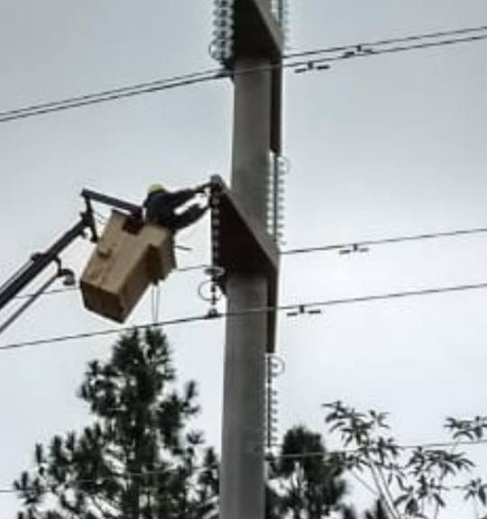 ND: La búsqueda de la falla se realizó en medio del monte a pie dado que la vieja línea 132 kv carece de sensores que determinen la ubicación aproximada de las averías en sus 50 km de áreas rurales que atraviesa. Mientras tanto, la nueva línea 132 kv continúa en nada pese a que se la licitó en mayo de 2015 y debía ya estar terminada.