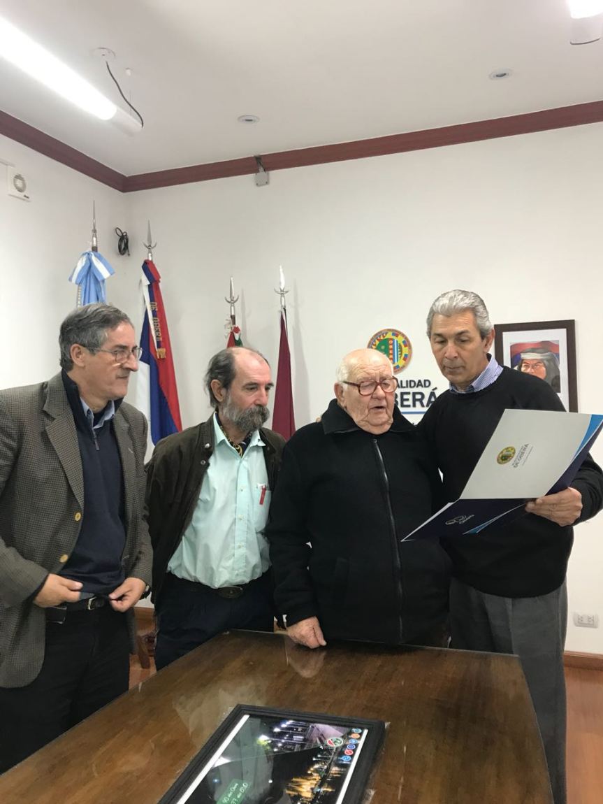 OBERA. Este miércoles a las 09:00 hs. en sala de Situación de la Municipalidad de Oberá; se realizó la entrega de un reconocimiento de parte del Municipio a Don Matías Hultgren, exgerente Administrativo de la CELO como referente cooperativo, en el marco de los 90 años de Oberá; así mismo, el Presidente de la Cooperativa, Ingeniero Carlos Ortt y el Tesorero del Consejo, Luis Bernal entregaron un presente de parte de la CELO al Intendente Dr Carlos Fernández en homenaje a los 90 años de la ciudad de Oberá.