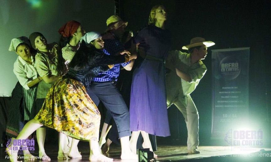 OBERÁ. Un grupo de diez bailarinas y bailarines pertenecientes al Instituto Superior de Profesorado de Arte de Oberá (ISPAO) brindó en el escenario el despertar de la memoria del público que colmó la sala del Espacio Incaa, durante la apertura oficial del Encuentro Internacional Oberá en Cortos 2018, donde se vivieron momentos de gran emoción a través de la danza y la música típica de estas tierras.