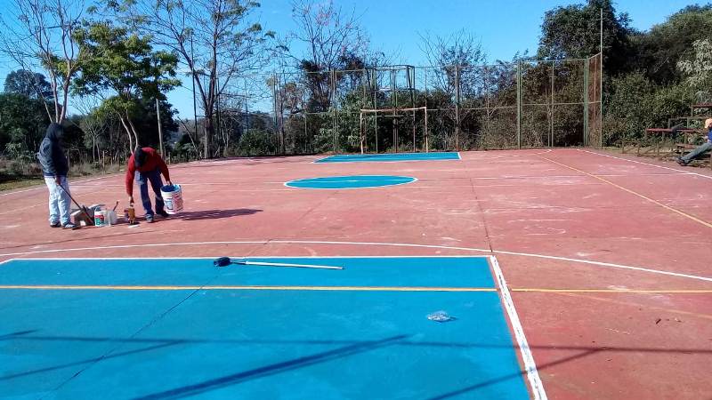 En una tarea importante de puesta en valor de los espacios que se utilizan para la práctica de deportes, los trabajadores de la dirección de Deportes realizaron la pintura y demarcación de la cancha. Además, se repararon los arcos de fútbol y se levantó la estructura del aro de básquet que estaba completamente caído.