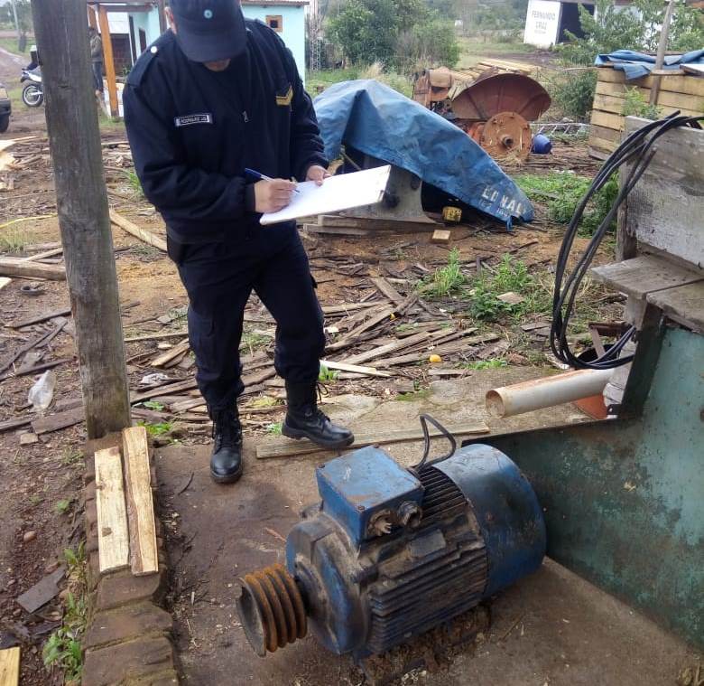 El damnificado denunció el robo de 1 tablero eléctrico, 7 térmicas, 3 capacitores, 1 temporizador, 1 regulador de voltaje, 1 motor trifásico de 40 HP, 1 motor chico de ½ HP, 1 piedra afiladora, 1 motor de 2 HP, los cuales se hallaban en un aserradero del lote 63 de Ameghino.
