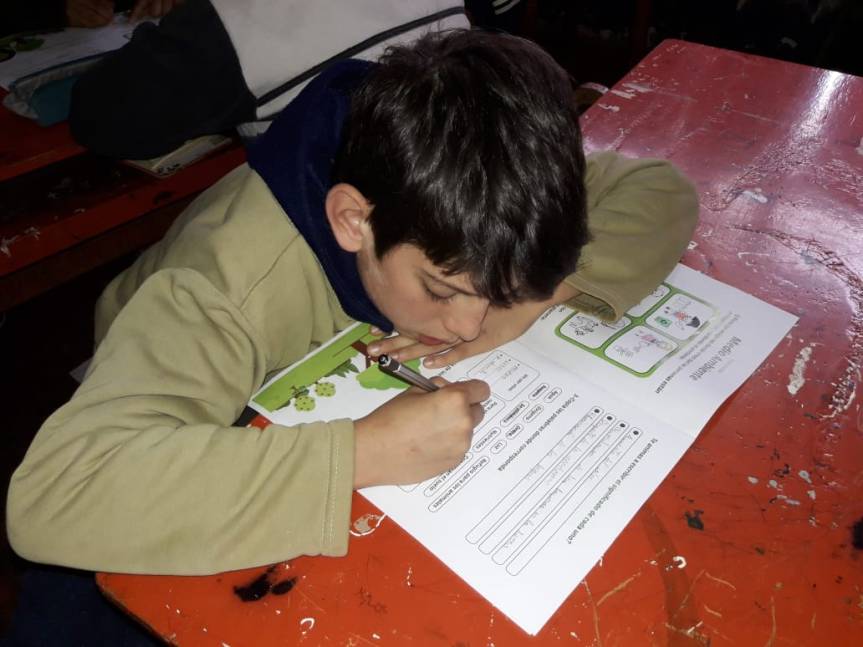 Los niños, reciben una charla en la que se les informa de manera interactiva el buen uso y cuidado del agua, del medio ambiente. Asimismo, completan un cuadernillo con actividades referidas a la charla.