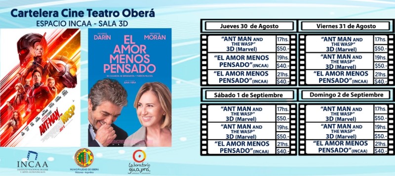 Mientras que en el horario infanto-juvenil la película elegida es AntMan and TheWasp, en 3D: ScottLang vuelve a enfundarse el traje de Ant-Man para pelear codo con codo junto a la Avispa. La misión revelará a los dos superhéroes un secreto terrible y los enfrentará a su enemigo más poderoso. Viernes, sábado y domingo a las 17 y 19 horas, valor entrada 50 pesos.