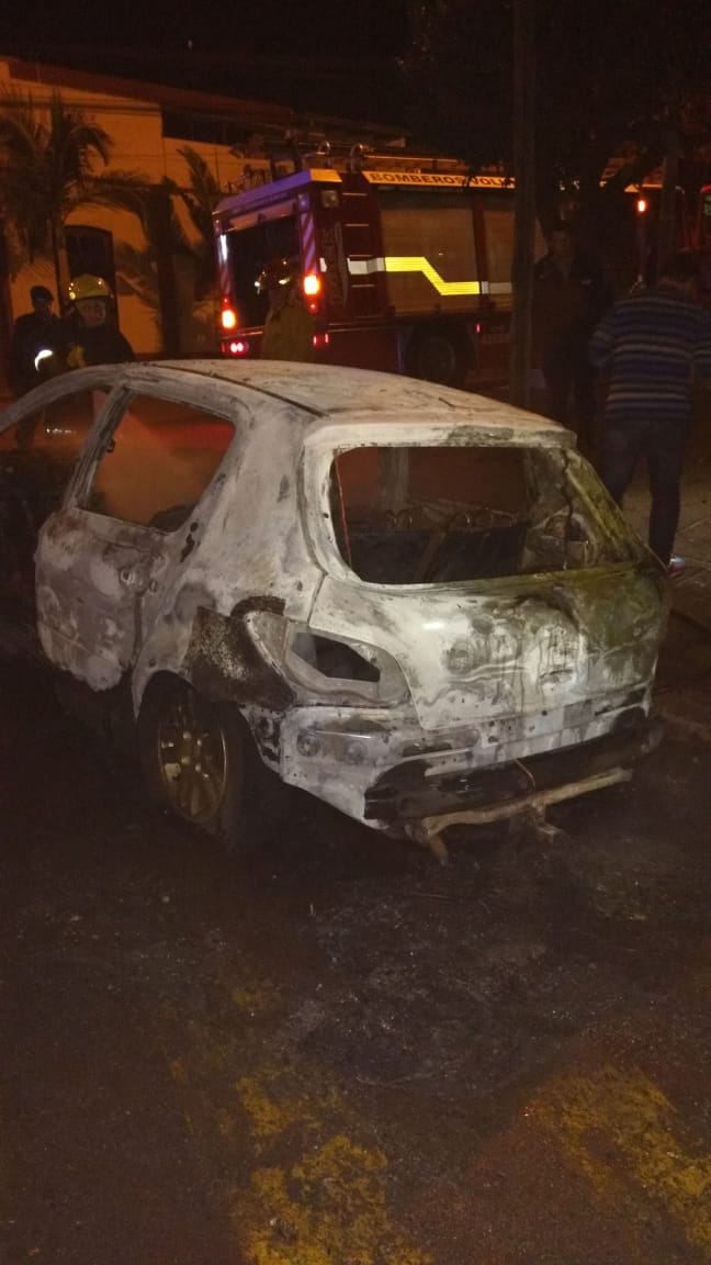 OBERÁ. El siniestro se registró esta madrugada en la intersección de las calles Buenos Aires y Avellaneda de Oberá; por causas que se investigan un Peugeot 307, que era conducido por Lucas Z. (37), se incendió completamente.