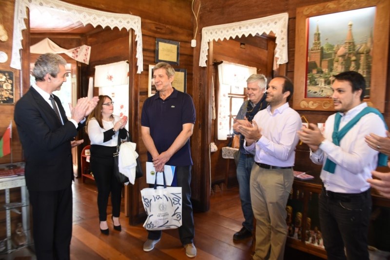 El jueves por la mañana, participó de una reunión en el museo de la Colectividad, junto al Embajador Extraordinario y Plenipotenciario Licenciado Vladmir Astapenka y al Cónsul Pavel Mironov, de la Embajada de la República de Belarús.