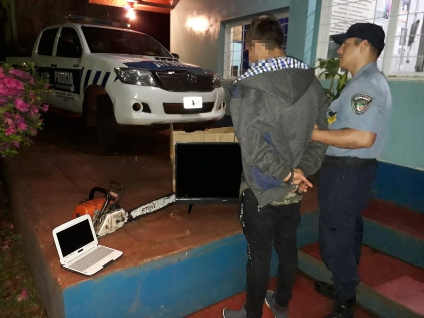 SALTO ENCANTADO. En las últimas horas en Colonia Mavalle efectivos de la seccional 2da, detuvieron a Brian M .(18) y secuestraron 1 TV Led de 32”, 1 netbook y una motosierra.