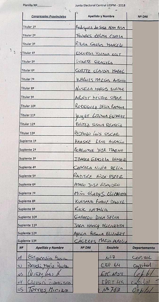 OBERA. El próximo 23 de noviembre se realizarán las elecciones de renovación de la totalidad de los miembros de la Comisión Directiva, Congresales Provinciales a CTERA y la Comisión Revisora de Cuentas de la Unión Docentes de la Provincia de Misiones (UDPM). En ese sentido la actual secretaria general, Stella Maris Leverberg, encabezará la lista 2 de la Agrupación de la Asociación de Docentes de Misiones (ADOMIS), siendo la única lista que se ha presentado.