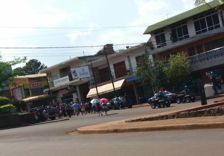 OBERA. Tareferos agrupados en la CCC que más temprano se concentraron en el centro cívico, marchan por la ciudad hacia la sede del Ministerio de Trabajo a cargo de Evelio Candia por reclamos sociales.