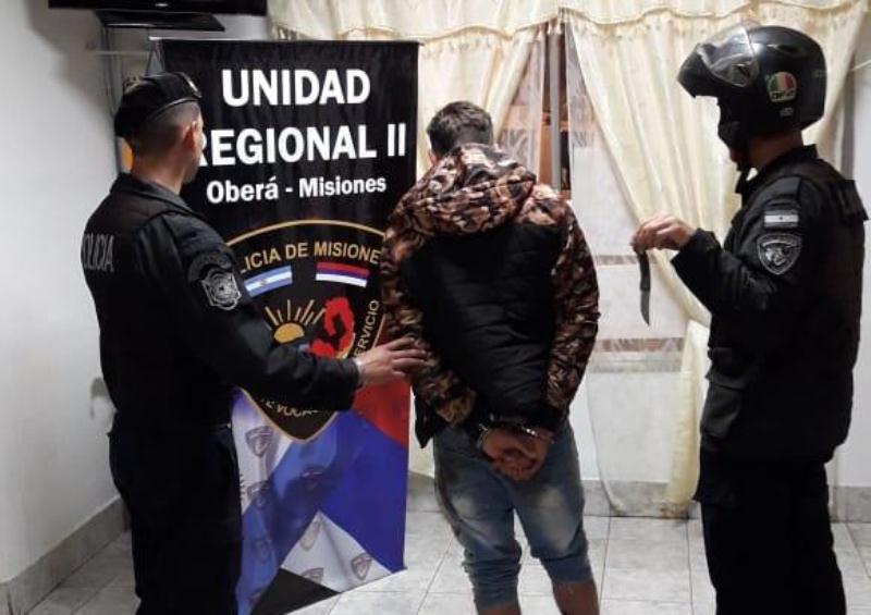 OBERÁ. Efectivos de la división Patrulla Motorizada, dependiente de la Unidad Regional II, detuvieron a Oscar P. (23) y secuestraron en su poder un cuchillo tipo navaja.