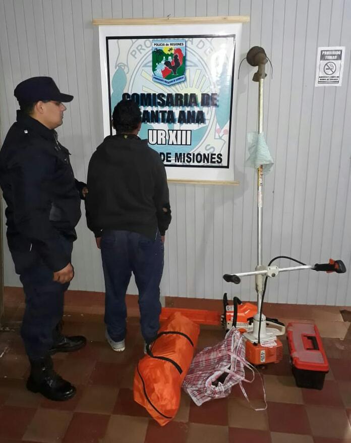 En las últimas horas en una parada de colectivos sobre Ruta 12, en el acceso a la localidad de Santa Ana, efectivos dependientes de la UR XIII detuvieron a Hugo C. (23) y recuperaron elementos denunciados como robados en la comisaría de San Ignacio.