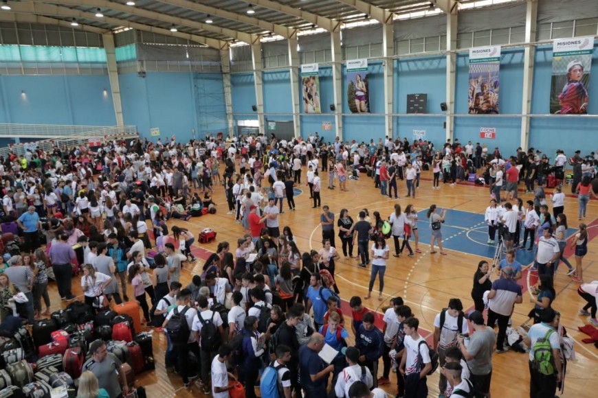La delegación de alrededor de 800 integrantes, entre atletas, profesores, entrenadores y coordinadores, se concentró para la partida en el Centro Provincial de Alto Rendimiento Deportivo (CePARD), en la ciudad de Posadas, donde desde temprano comenzaron a llegar desde distintos puntos de la provincia, los grupos de chicas y chicos cargados de esperanzas y ganas de participar en esta gran cita del deporte nacional.