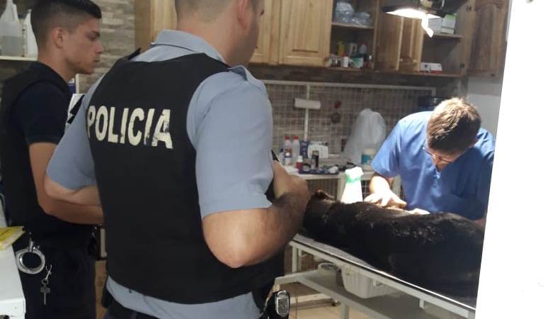 Posteriormente, efectivos de la Comisaría 1 UR VIII trasladaron al animal a la veterinaria para asistencia y detuvieron al agresor identificado como Ezequiel D. M. Además, secuestraron la escopeta de un cañón de calibre 36.